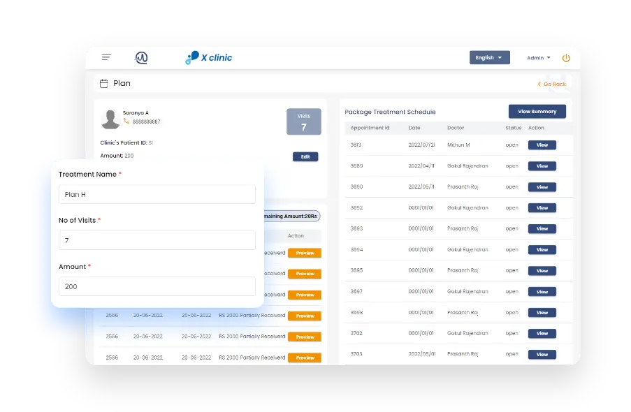 Treatment Planner allows clinics to plan therapies that require multiple visits. This feature makes ClinaNG a suitable software for Physiotherapy, Dental, Trichology, and Mental health clinics to plan the treatment schedule, book appointments for every visit, allocate doctors, and track payments hence patients get a comprehensive view of the treatment at the beginning itself.