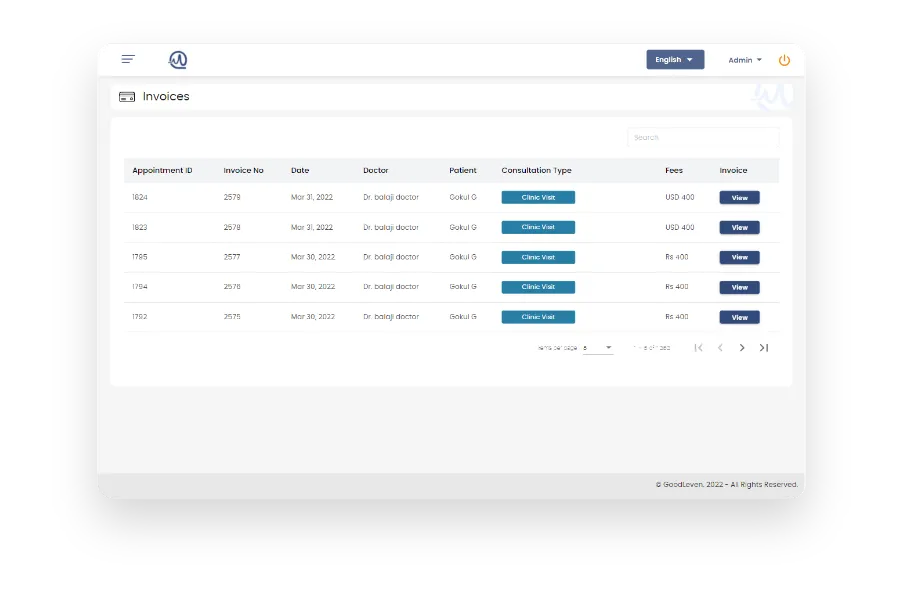 Simple yet intuitive appointment scheduler that lets clinic admins and physicians list their available slots, for both clinic visit and video consultations. Option to shift and cancel appointments in a trice. Instantly identify the status of the appointment with the help of unique color-coded views.